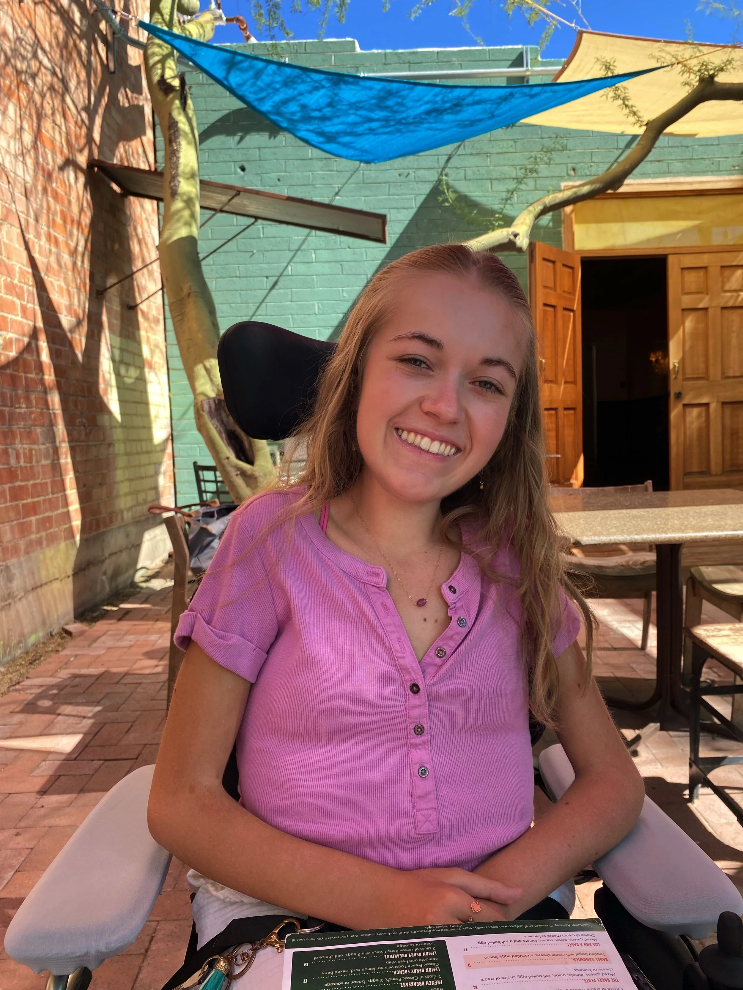 Reagan Imhoff is a junior and is majoring in Psychology and minoring in Justice, Equity, Diversity, and Inclusion (JEDI) Studies. She plans on pursuing graduate school and obtaining her post-doctoral degree in clinical psychology. Reagan wants to become a clinical psychologist and help her clients and people with disabilities be confident in who they are. Reagan was a National Goodwill Ambassador for the Muscular Dystrophy Association (MDA). She, along with other advocates, pushed Congress to pass a bill that would include accessibility provisions in the 2023 FAA Authorization, which passed in the House and the Senate.